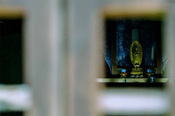 本堂背後につづく位牌堂には位牌壇が設けられ、数多くの位牌が安置されている。